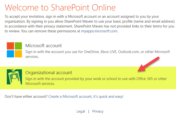 So at this point, the external user will just click on the Organizational account, type in the Microsoft 365 credentials, and that’s it!